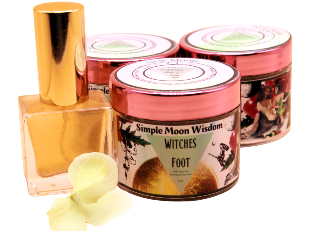 Just like the incense line our perfumes are all natural. Made with handmade tinctures and EO’s. Right Now we have two perfumes Witches Foot and Angel Fairy. Witches Foot is inspired by the energy of the New Moon, getting lost in the fog yet knowing exactly where you are without having to be in control. Angel Fairy is inspired by the Full Moon with its scent of high hopes, new beginnings, and dancing with life. You can order your samples by clicking on the the pictures.